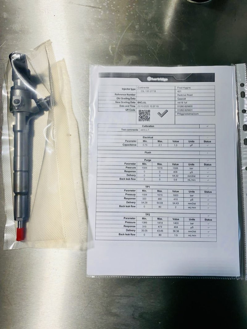Na všechny opravy a repasované vstřikovače poskytujeme standardní záruku 12 měsíců. Záruka se vztahuje pouze za splnění požadavků výrobce a dodržení postupů stanovených výrobcem dané palivové soustavy.